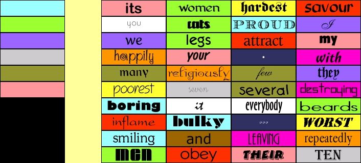 Oh Yes, the Words...The observant among you will have noticed that the tiles in the mosaic all have words written on them. When a game finishes, as well as your score you'll be given a sentence composed of the words written on the tiles you selected, in the order you clicked on them. The time constraint makes it harder to win if you read the words on the tiles before you click on them. You can recognise the colour of a tile and get your mouse to it quickly, but if you actually read it, well, it'll slow you down. However... Your subconscious mind probably will read it - it just won't have time to tell you before you're off clicking on something else. Furthermore, there are usually several choices in the mosaic for the colours requested. You can pick any one of the tiles, but you actually do get to select only one. On what do you base your decision? Does your subconscious mind perhaps have anything to do with it? I don't suppose that many people will read anything into sentences like "Four transparent nights forcefully inflame his compliant perfumes using our youngest packets.", but occasionally you get things like "Most men oppose my ideas." and then you've got to wonder...