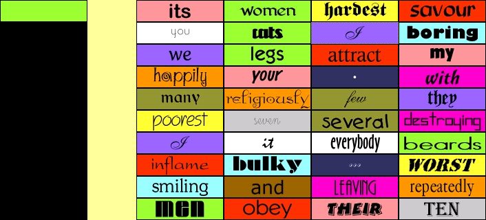![]() The order of the coloured tiles are randomised at the start of each game, so your screen won't necessarily look quite the same as this, but it'll be similar. The idea is that the column on the left displays the colours you are allowed to pick from the mosaic on the right. In our example, the colours are: cyan, green, blue, grey, khaki, pink. Every game will start off with these six colours in its column, but they won't necessarily be in that order. OK, so at this point you can click on any tile from the mosaic on the right, so long as it's one of the six colours. You'll score more points by picking tiles of colours from higher up the column, though, so it's usually best to aim for the one at the top. The faster you click on a tile, the better, so you shouldn't hang around! Let's suppose you did go for the colour at the top of the column, and clicked on the cyan tile three across and two down (marked "proud"). The moment you do so, the screen changes in three ways: