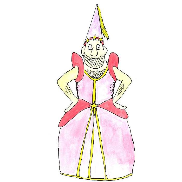Prince Adam pestered his father about this every day, until eventually The King got tired of it. "Very well," he told Prince Adam, "I'll let you be king, but only if you can prove you're as good as you say. Ride the unicorn in the magic wood, that ought to be hard enough." Prince Adam smiled. "You're trying to trick me," he said. "Unicorns can only be ridden by maidens. Well, I don't mind dressing up as a maiden for a day if I get to be king. And I can ride anything." Next day, Prince Adam set off wearing one of his sister's dresses. He soon arrived at the magic wood, and asked a deer where he might find the unicorn. "That way," said the deer, "but you can't ride him." "Thank you," answered Prince Adam in a squeaky voice. "I can ride him, though. I can ride anything." "You won't even be able to ride him if you shave off your beard," said the deer, and got back to eating some green stuff off the floor. Prince Adam had forgotten about his beard, but soon cut it off with his sword, using a spoon he had with him as a mirror. He rode for a while longer when he came across a cuckoo. "Do you know where the unicorn is?" he asked. "Over there, miss," said the cuckoo, "but you can't ride him." "I can ride anything," answered Prince Adam, rather smug at having tricked the cuckoo with his improved disguise. Sure enough, round the corner, there stood the unicorn. "Aha!" said Prince Adam in a girly sort of way. "I wish to ride you, please." "I'm sorry," said the unicorn. "You can't." "But I'm a maiden, am I not? And I can ride anything." "Ordinarily I'd let you, yes," answered the unicorn. "Only it's my bad back, you see - it's been playing me up for months. I wouldn't get two paces before having to lie down, it's agony, it really is." SoThe prince waited for his father to die, like princes usually do.