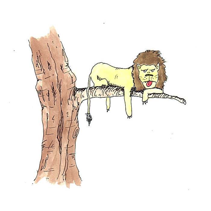 One day, Glenys's grandfather pointed with his walking stick to an old tree with the bark stripped off its trunk. "See that?" he said, gravely. "One of the lions of England did that." Glenys didn't believe him for a moment, for her grandfather often told her tall stories. "What, a real lion? Like in the zoo?" she asked. Glenys's grandfather laughed. "Oh no, those are tame, African lions. The ones around here are wild, English lions, and they're much, much bigger." "Bigger than an elephant?" asked Glenys, suspiciously. "Bigger than an elephant standing upright on its back legs waving a spoon in its trunk," replied her grandfather. Glenys wasn't afraid, in fact she was cross. She knew her grandfather was making it all up in a silly attempt to tease her. "Why don't the lions try to eat us, then?" she asked. Glenys's grandfather raised his walking stick. "One of them did pounce on me when I was younger, but I beat it off with this. Now, so long as the lions can see it, they won't give us any trouble." Glenys frowned. "You're fibbing," she said, and she ran off ahead along the winding path, deeper into the woods. "Come back, Glenys!" called her grandfather. "It isn't safe! The lions of England will get you!" "There's no such thing!" she shouted back. "You're just telling made-up stories that aren't funny, and I don't want to listen to them ever again." And at that very moment, an enormous lion leaped out of a tree and bit her head right off. SoNot everything grandads tell you turns out to be complete nonsense.